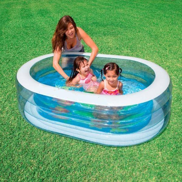 Бассейн детский надувной Нежность овальный 57482 Intex - прозрарачные стенки этого бассейна в сочетании с игрой солнечных лучей и искристость воды, кроме нежных и приятных чувств, ничего другого вызывать просто не могут. Бассейн надувной Intex 57482 подходит для детей от годика до шести лет.