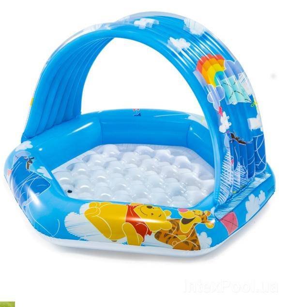 Бассейн детский надувной Винни Пух с навесом 58415 Intex - дно надувное, с навесом от солнца.