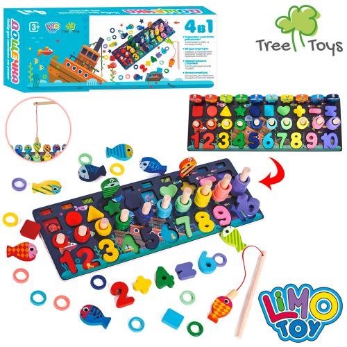 Центр развивающий деревянный с цифрами, рыбалкой и кольцами MD 2772
