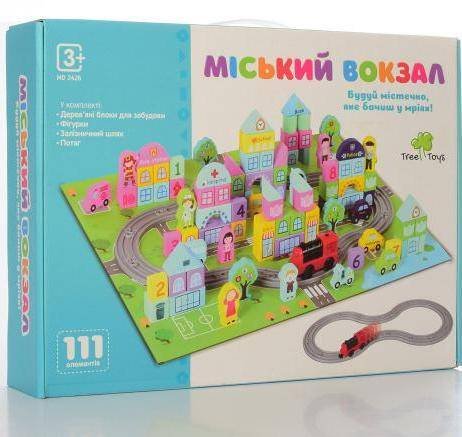 Деревянная игрушка Городок Железнодорожный вокзал 111 деталей MD 2426