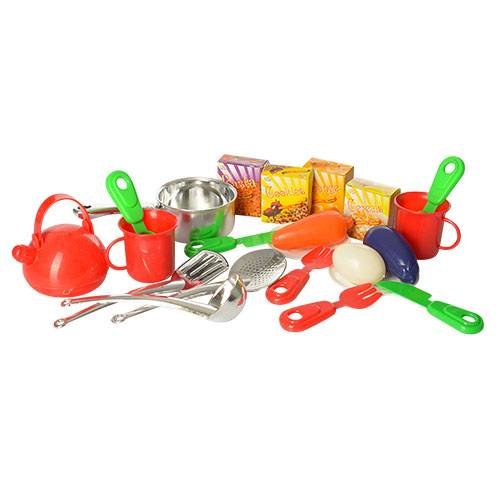 В комплект включен полный набор кухонных принадлежностей — посуда, продукты и даже кухонные часики! Ее можно поставить вплотную к стене, тем самым сэкономив много места в комнате ребенка.