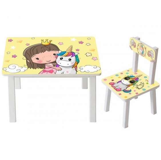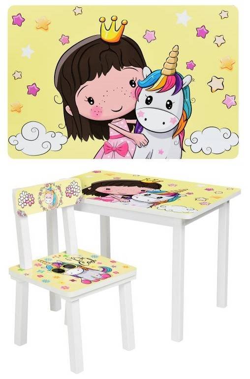 Детский стол и стул для творчества Принцесса и единорог BSM2K-31 Princess and Unicorn