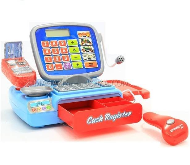 Касса детская для игры в магазин 2387 - замечательная детская касса со сканером и микрофоном, а также весами, калькулятором. У игрушки есть световые эффекты, а работает она на батарейках.