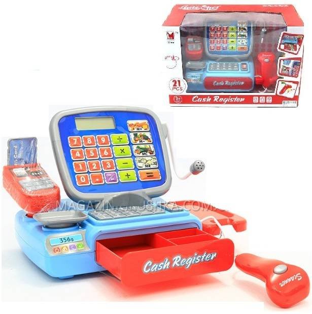 Касса детская для игры в магазин 2387 - замечательная детская касса со сканером и микрофоном, а также весами, калькулятором. У игрушки есть световые эффекты, а работает она на батарейках. Отличный подарок на любой праздник. Все дети очень любят играть в магазин, имитируя взрослых и то, как они совершают покупки Данная детская касса со сканером и микрофоном недорого стоит, но качество её Вас порадует. И внешний вид. Очень стильная и выдержанная игрушка.  Также отлично подойдет как касса для мальчиков. Ведь её цвета синий и красный. Никаких розовых тонов. Все очень сдержанно. А ведь нередко очень сложно найти такую игрушку для мальчика.