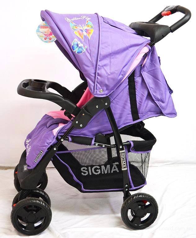 Коляска детская прогулочная с перекидной ручкой Sigma S-K-6 фиолетово-розовая - очень удобна, маневренна, компактна и очень красивая коляска с чехлом для ножек и вместительной корзиной.