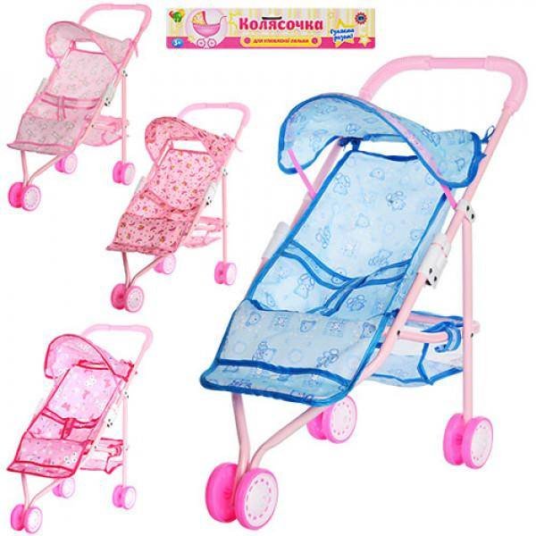 Коляска для куклы прогулочная c козырьком трехколесная с корзиной 836