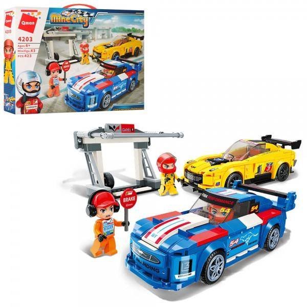 Конструктор пит-стоп+2 машины и фигурка 423 детали 4203 Qman