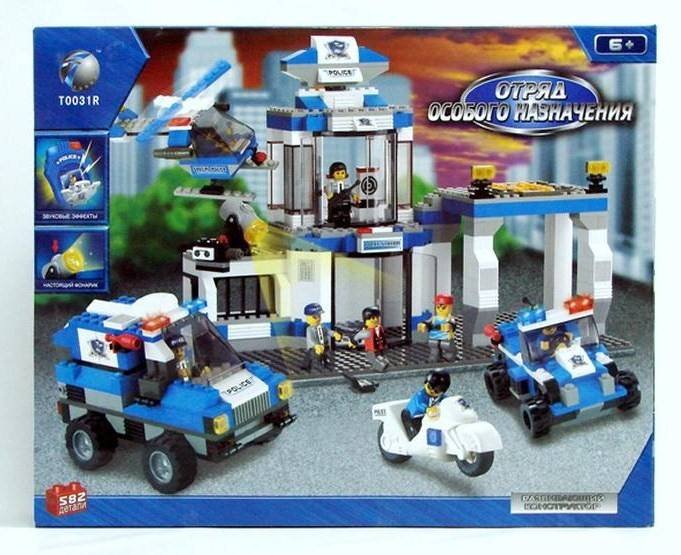 Конструктор "Полицейский участок" в 2 уровня с транспортом 582 детали Sluban 619991/M38 B0192 - конструктор по типу Lego, состоящий из 582 деталей, из которых можно собрать целый полицейский участок в 2 этажа с полным комплектом наземного и воздушного транспорта. Получится целый отряд спецназназначения :)