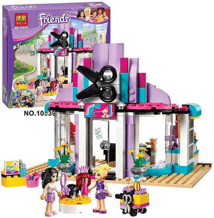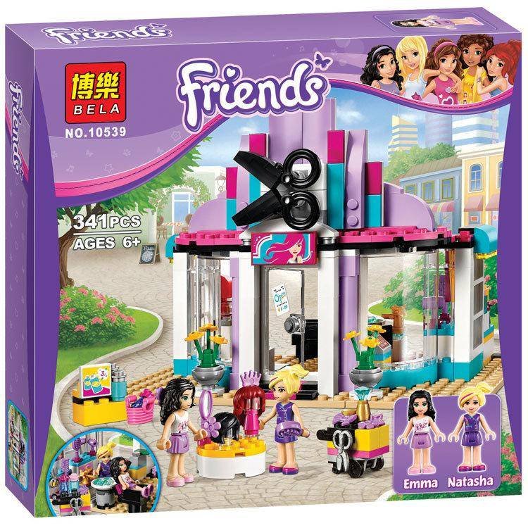 Конструктор"Салон красоты" 341 деталь 10539 Bela Friends - сделай Эмме новую прическу в парикмахерской Хартлейк - новом заведении на улицах Хартлейк-Сити! Познакомься со стилистом Наташей. У нее невероятные крашеные волосы. Помой Эмме волосы над мойкой самыми современными средствами для ухода за волосами. Какую прическу она бы хотела сегодня? Пока вы колдуете над ее волосами с полным арсеналом Наташиных инструментов, Эмма может почитать журнал и выпить кофе.