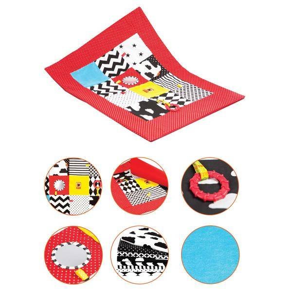 Коврик для игры и развития «Black & White» 7201-04 Масик - пошит из натуральных, разнофактурных тканей. Коврик имеет множество интересных деталей, которые помогут при прорезывании зубов и будут способствовать развитию слуха и сенсорики малыша.