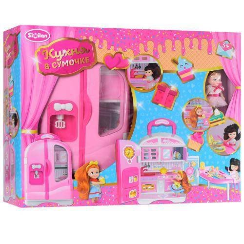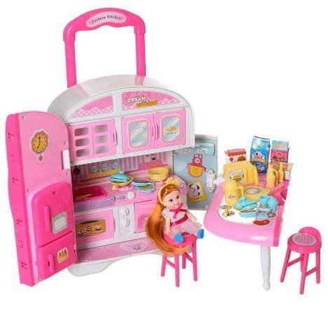 Кухня в чемодане с посудой и продуктами + кукла QL048-2