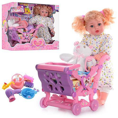 Кукла с коляской и мишкой мягкотелая 60662 - большая кукла длиной 49 см, мягкотелая, с виниловыми головой, ручками и ножками. Кукла играет в дочки-матери со своей игрушкой мишкой плюшевым.