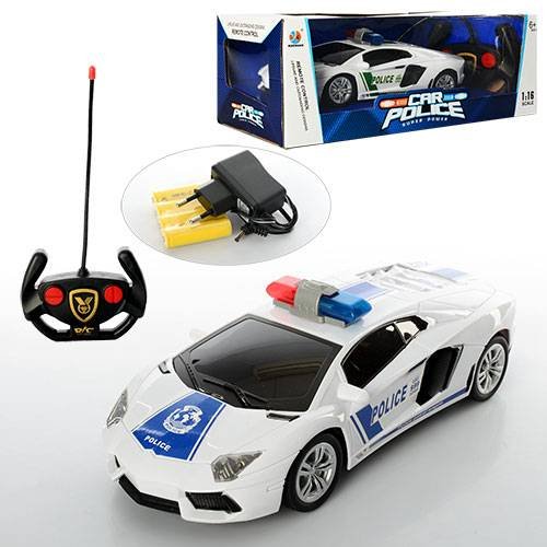 Машинка на радиоуправлении Полиция на аккумуляторах с резиновыми колесами 059-45 - машинка с пультом управления на аккумуляторах со световыми эффектами в 2-х цветах.