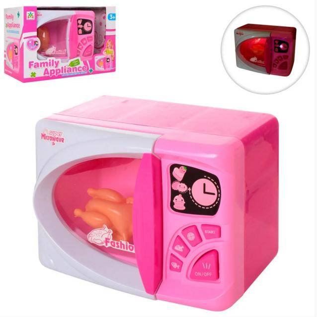 Микроволновка детская мини с продуктами, звуком и светом 8808-6 - небольшая микроволоновка, которая светится и имеет звуковые эффекты. В наборе маленькие продукты.