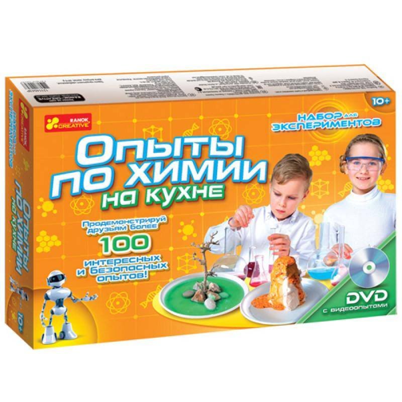 Набор для экспериментов Опыты по химии на кухне 12114043Р/0330 Ранок - 100 интересных и безопасных опытов, среди них: чайные чудеса, яблочная батарейка, опыты с каркаде, крахмальные чернила, лимоннокислый вулкан,домашняя экспертиза. В комплекте: химические реактивы, оборудование, методические рекомендации с описанием алгоритма проведения опытов.
