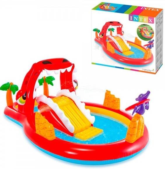 Надувной игровой центр Бассейн Динозавтры 57163 - изумительный бассейн с горкой на 150 л размером 196-170-107 см, с ремкомплектом.