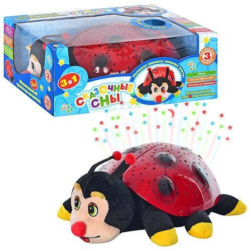 Ночник-проектор музыкальный Божья коровка 8019 - ночник озвучен на русском языке. 3 колыбельные песни, 2 сказки. Проекция звездного неба в 3 цветах. Мерцание одного из выбранных цветов. Быстрый переход от цвета к цвету. Автоматическое отключение через 50 мин.