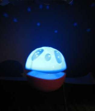При включении на потолок падают звездочки и месяц. Играет классическая приятная музыка, меняется свет ( розовый, салатовый, голубой). Ночник может качаться из стороны в сторону, создается эффект движения неба. Музыку при желании можно отключить, звук регулируется.