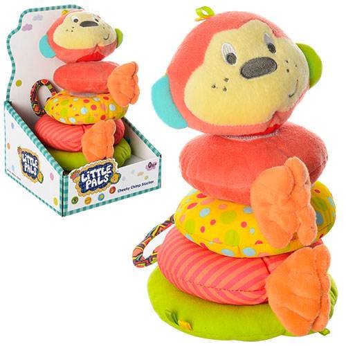 Пирамида мягкая в виде обезьянки 0123-NI высотой 20см с погремушкой, шуршалкой и 4-мя кольцами.