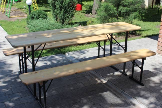 Садовая деревянная мебель стол и 2 скамейки складные Украина0