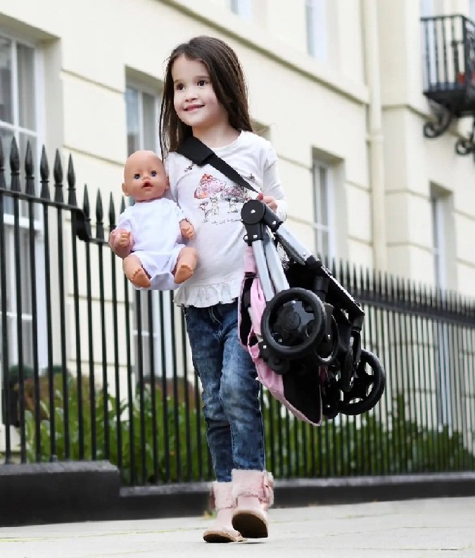 Эта симпатичная розово-черная кукольная коляска с 4-колесной рамной структурой воспроизведена с настоящих колясок Joie с современным дизайном. Коляска отлично подойдет для игры в куклы, высота которых не превышает 50 см.