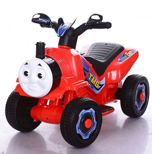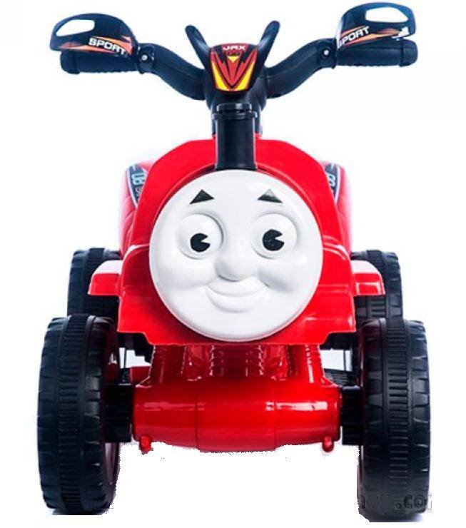 Детский толокар с моторами создан в стиле известного персонажа Паровозика Томаса. Данная модель может использоваться как толокар и как электромобиль. Паровозик оснащен мотором 18W и аккумулятором 6V7AH. Колеса сделаны из EVA материала. При езде из трубы выходит искусственный дым.
