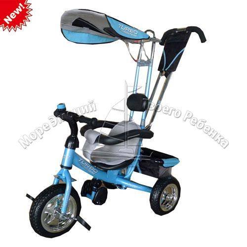 Велосипед трехколесный с усиленной родительской ручкой Turbo 1648 розовый, голубой и желтый