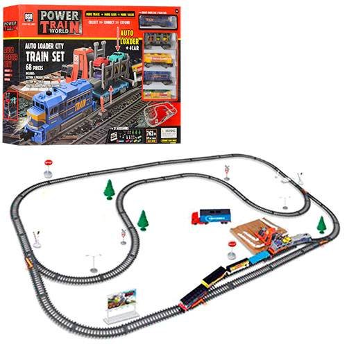 Железная дорога детская Как настоящая с остановкой 2081 - большая детская дорога размером 147-85,5 см с длиной железнодорожных путей 762 см,состоящая из локомотива с музыкальным сопровождением, вагонами, дорожными знаками, состоящая аж из 68 деталей, на батарейках в подарочной упаковке - коробке 59,5-40,5-7,5 см