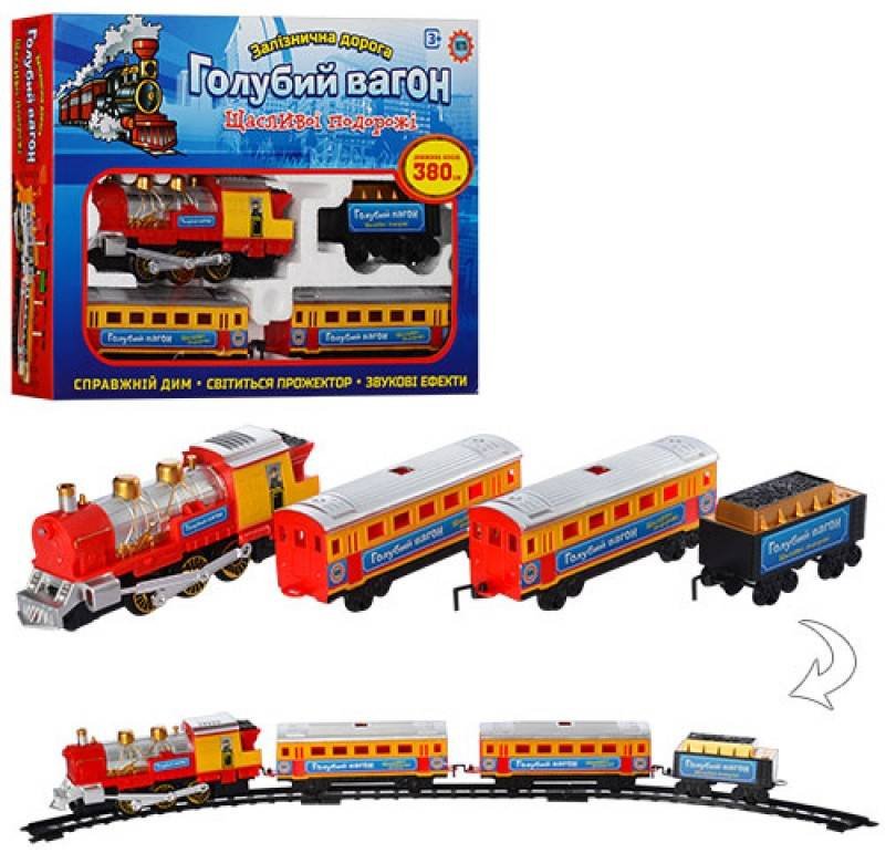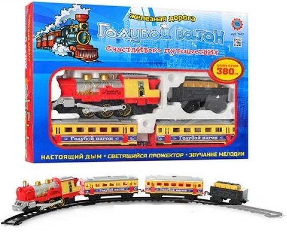 Железная дорога детская музыкальная Голубой вагон 380 см 7017 - детская игрушка железная дорога - любимая игрушка игрушка всех детей на свете. Веками железная дорога с её паровозами, вагонами, шпалами и рельсами приковывала к себе внимание всей детворы. Даже становясь старше, мы превращаемся в детей, когда видим на полке магазина детскую железную дорогу.